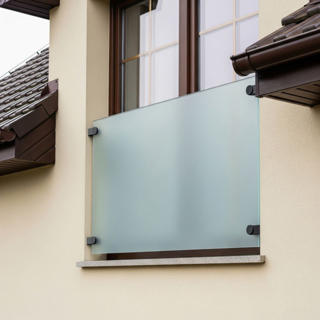 Komplet balkon francuski szklany ZETKA podtynkowy dla okna 100 cm szkło mleczne