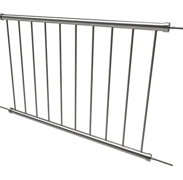 Kompaktowa balustrada wykonana w całości z szlifowanej stali nierdzewnej AISI 304. Dwa słupki boczne, okrągła poręcz fi 42,4 mm oraz dziesięć pionowych prętów fi 12 mm tworzą lekką, wytrzymałą i w pełni przepuszczającą światło osłonę portfenetru. Idealne zabezpieczenie dla nowoczesnych elewacji w stylu modern, industrial i loft.