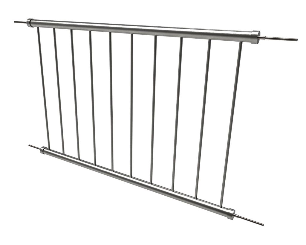 Balkon francuski ze stali nierdzewnej 130 cm – poręcz fi 42,4, pionowe wypełnienie fi 12, wykończenie szlifowane