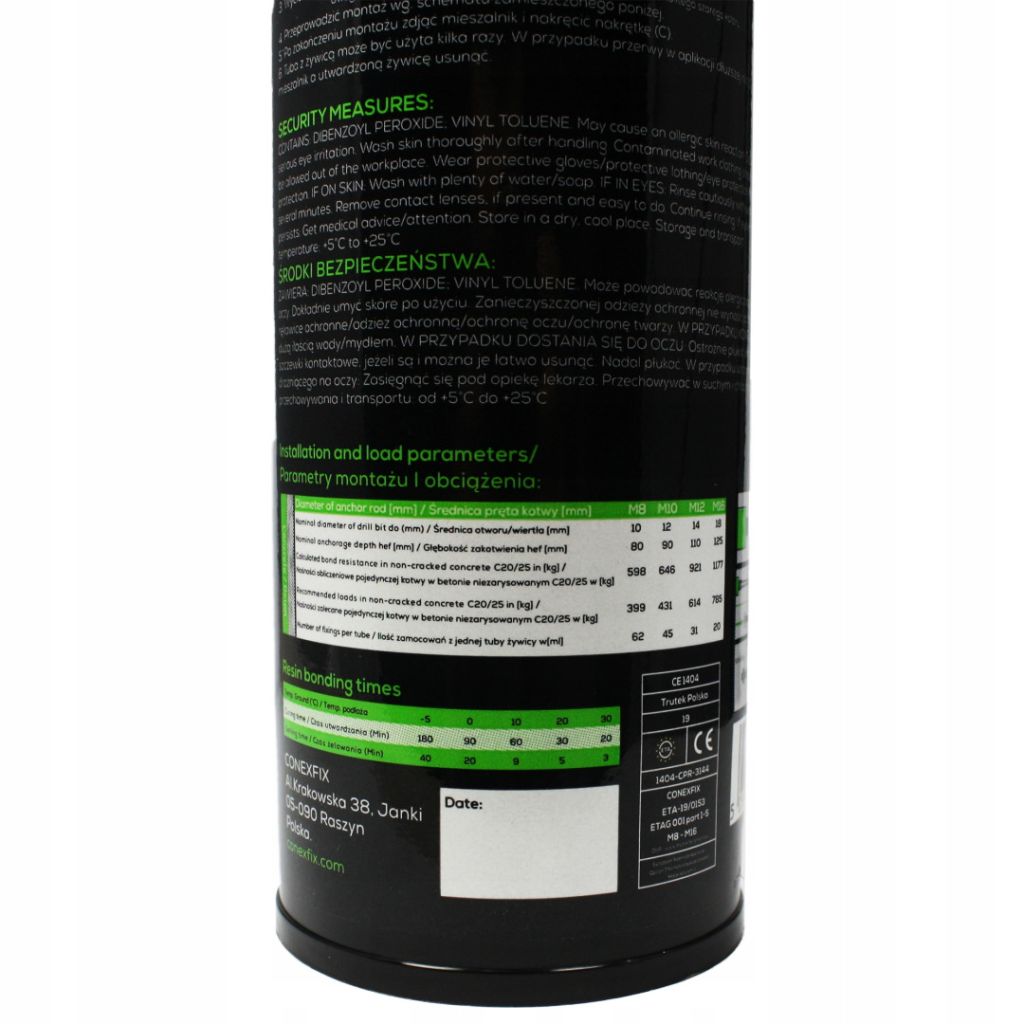 - Pojemność: 300ml - wystarczająca do wykonania kilku mocowań