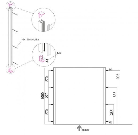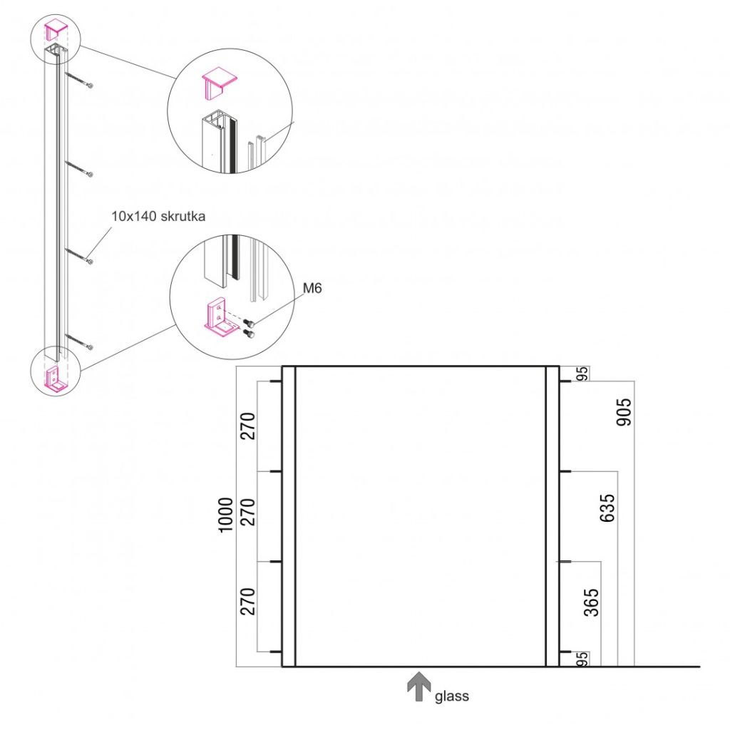 Specyfikacja techniczna – balustrada francuska profil natynkowy 110 cm
