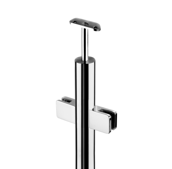 Słupek do balkonu francuskiego z montażem bocznym – fi 42,4 mm z podporą poręczy stałą – polerowany
